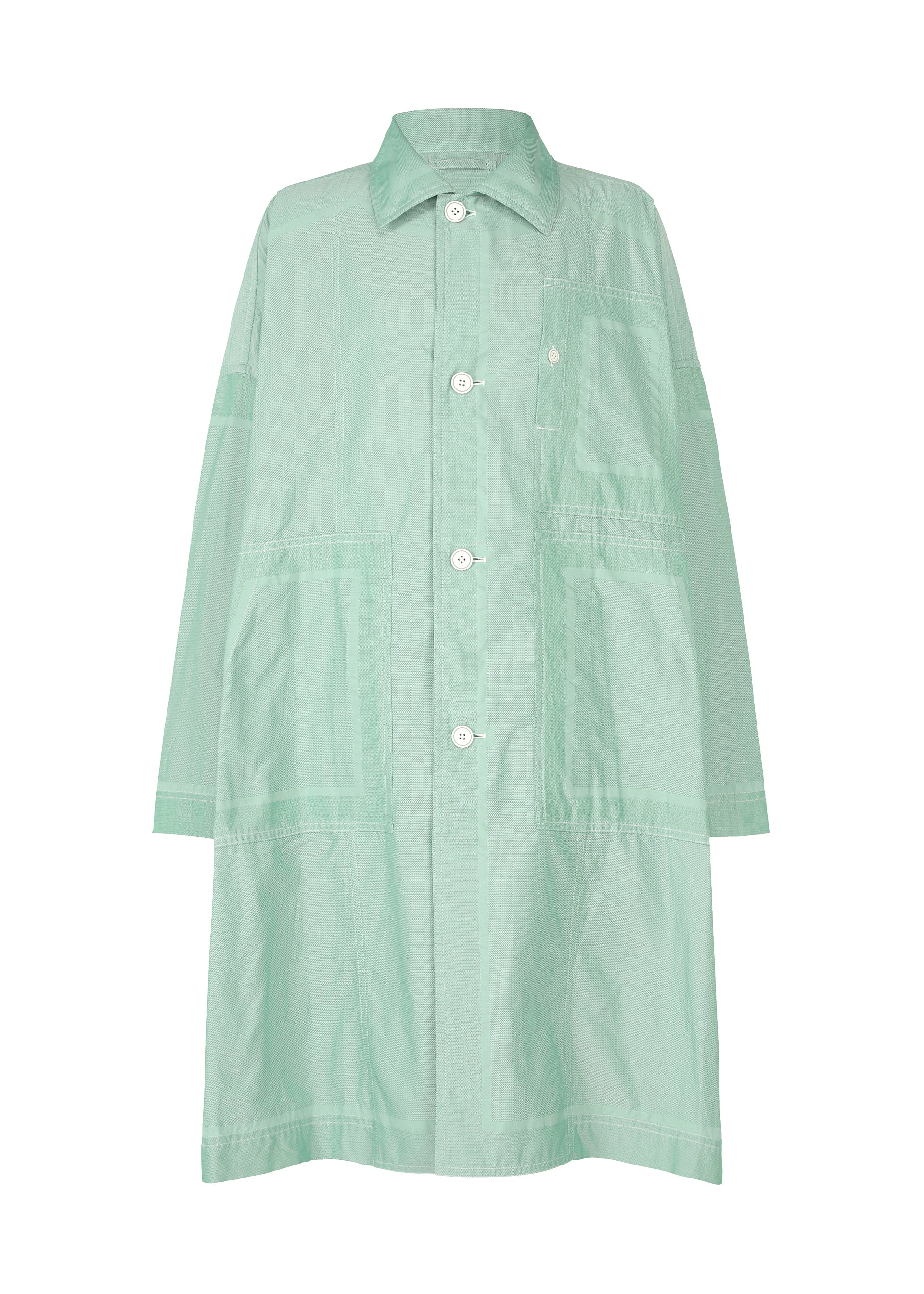 着る人が自由に形を作ることができる形状記憶素材を使用した、たっぷりとした分量感のコート。袖口を捲り上げると、形がキープされて袖が落ちてくることはありません。作業をするときや、スタイルに変化をつけたいときなど、その時々の気分やニーズに合わせて、服の表情を自由にアレンジして楽しめます。生地の表面を払うように伸ばすことでシワが軽減されるため、コンパクトにして持ち運びできます。