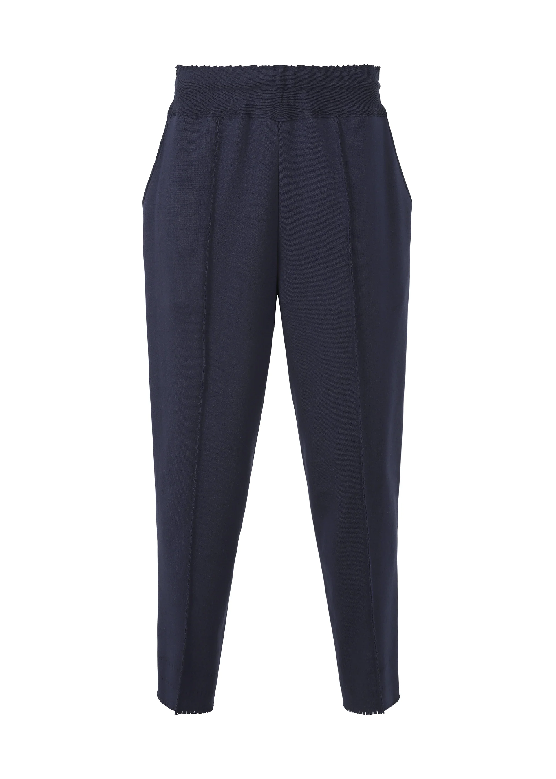 A-POC誕生当時から進化を続けている、チューブ状の生地から服を切り出してつくるニットのパンツ。一年を通して着心地のよい素材で、男女兼用で着用できます。ウエストは内側の紐で調整可能です。