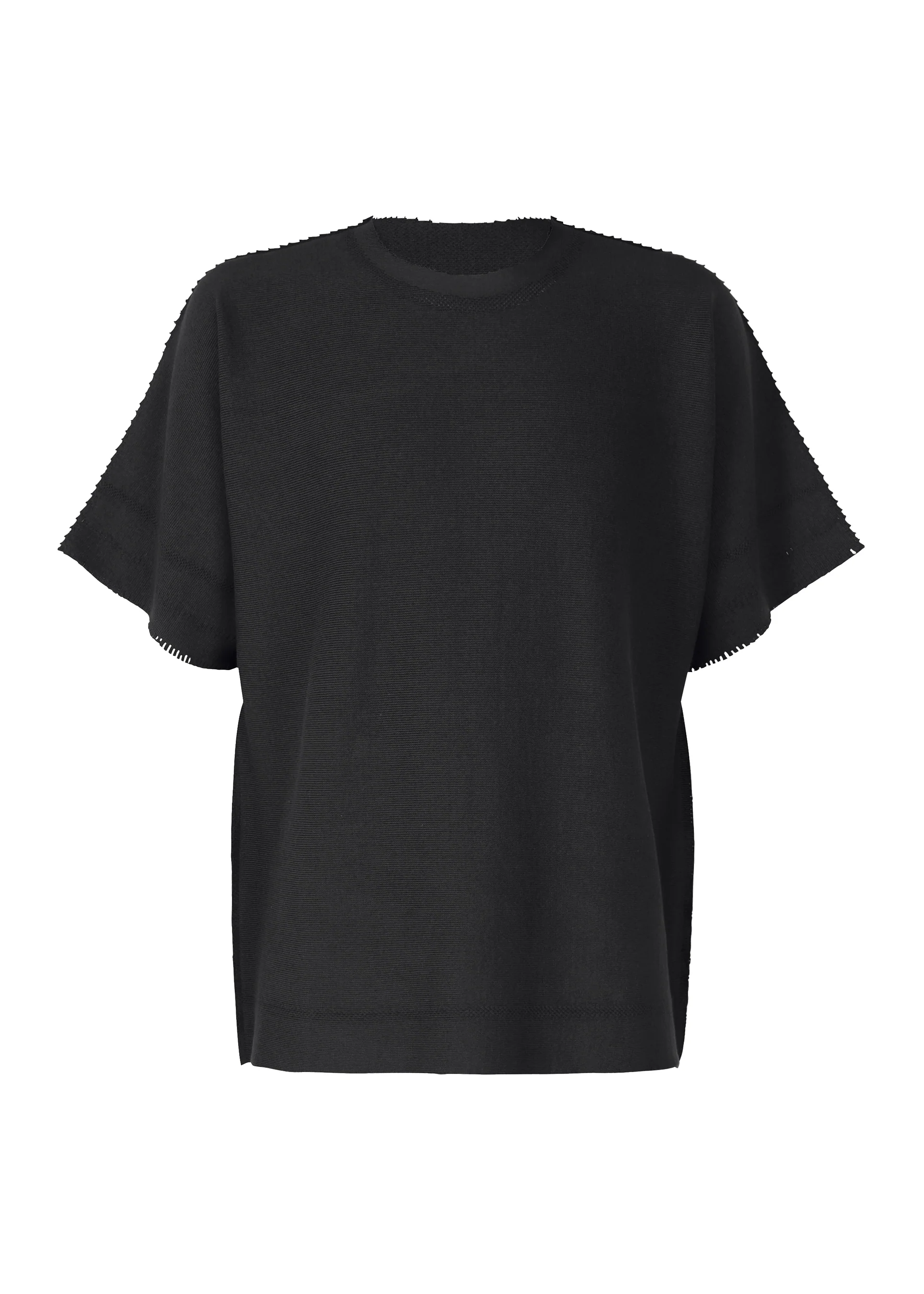 A-POC誕生当時から進化を続けている、チューブ状の生地から服を切り出してつくるニットの丸首半袖トップ。一年を通して着心地のよい素材で、男女兼用で着用できます。