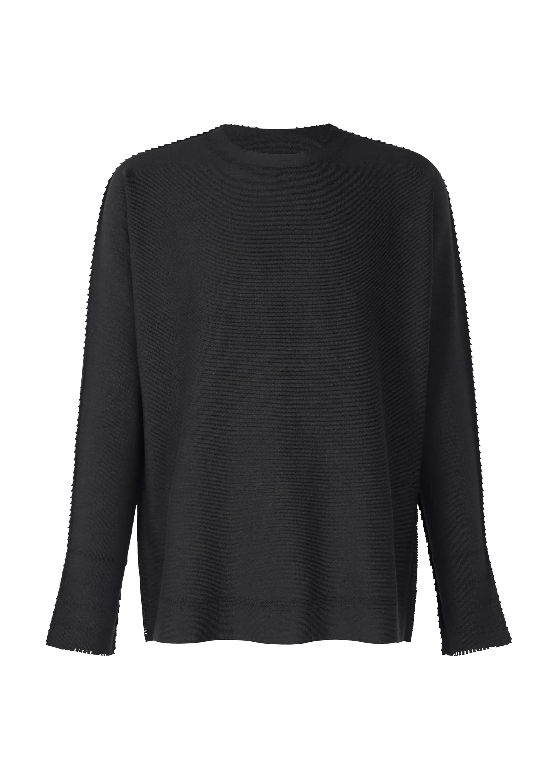 A-POC誕生当時から進化を続けている、チューブ状の生地から服を切り出してつくるニットの丸首長袖トップ。一年を通して着心地のよい素材で、男女兼用で着用できます。