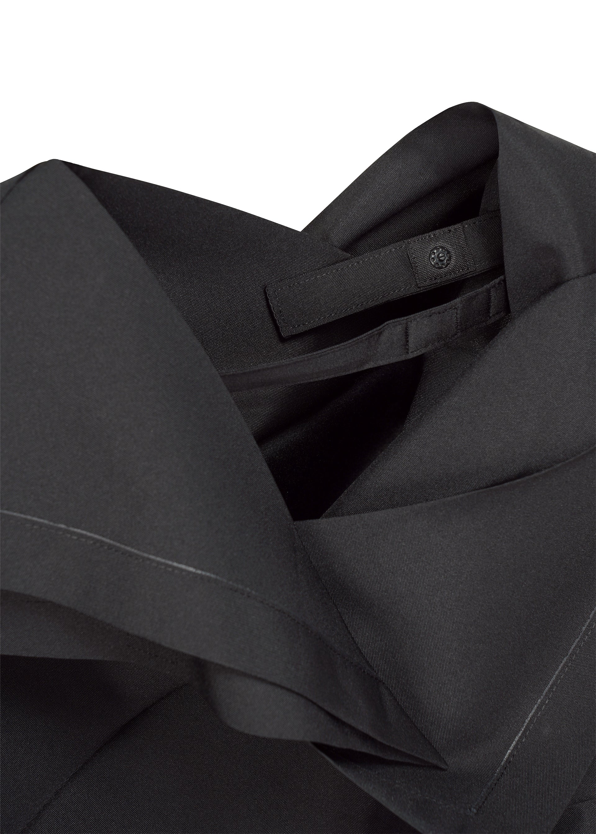 再生ポリエステル生地を使用したトップ。折りたたむと平面になるデザインです。