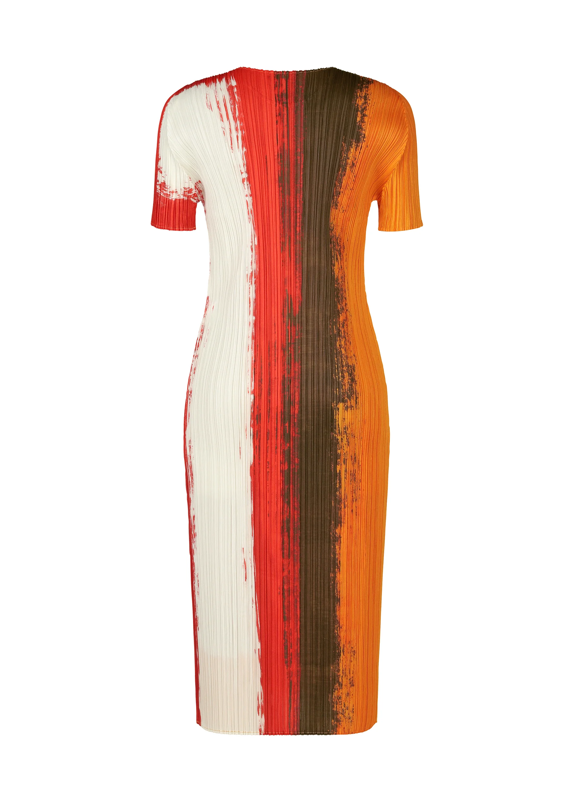 力強く跳び上がる様を表現したプリントシリーズの丸首半袖ワンピース。躍動感を表現したラインが特徴です。