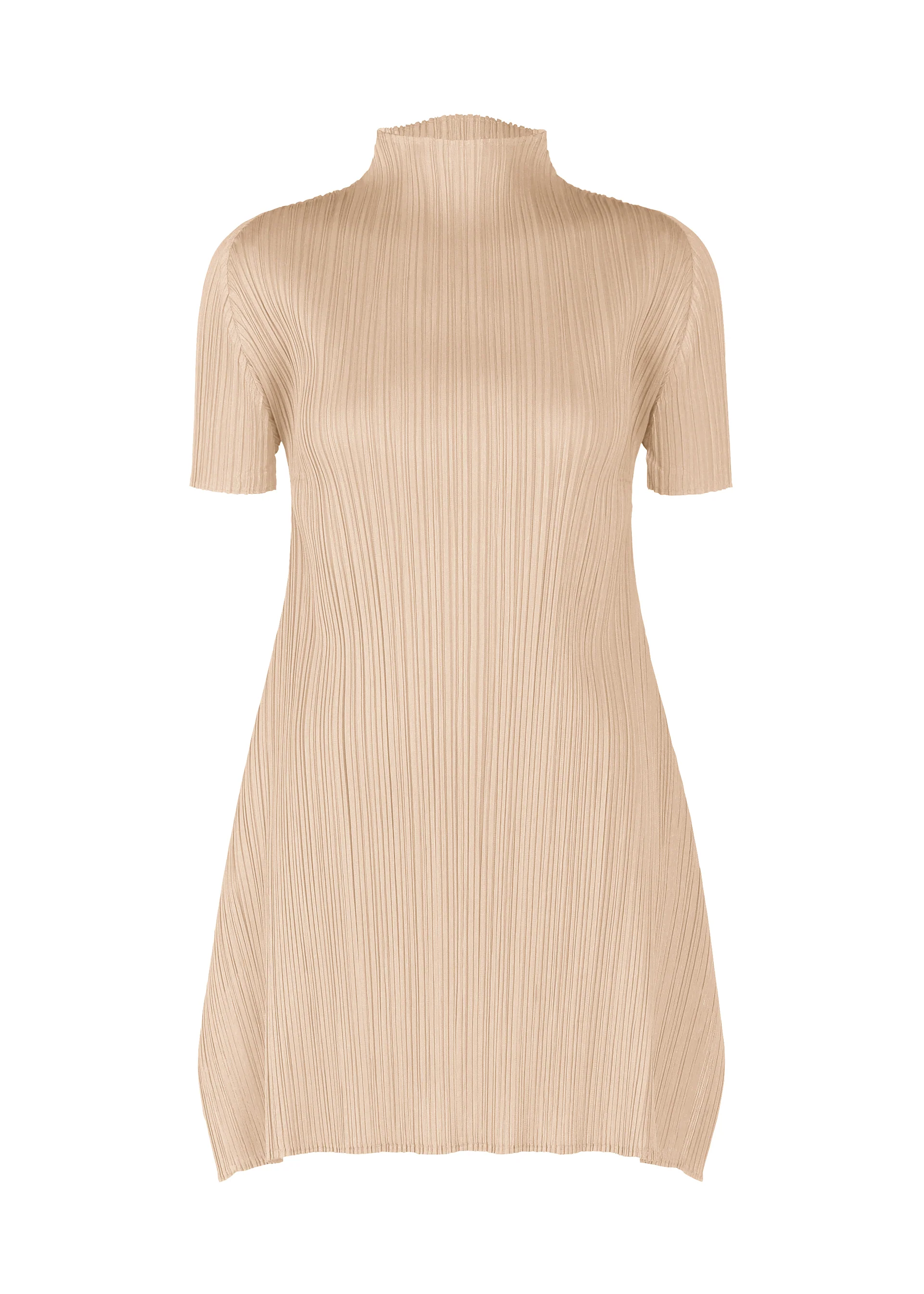 大地から飛び上がるような力強さ、舞い上がる砂や土の香り、ジャンプする躍動感をイメージした色展開のハイネック半袖チュニック。丸みのあるふんわりとしたシルエットが特徴です。両脇にスリットがあります。